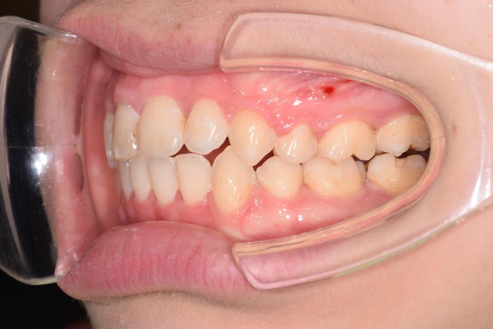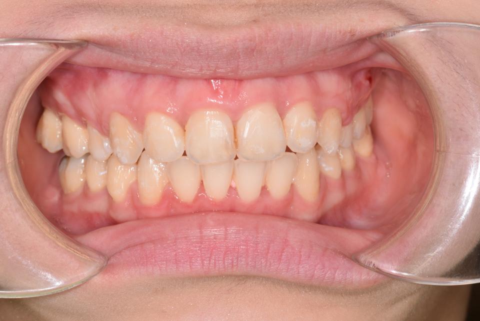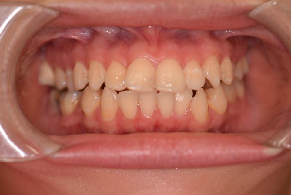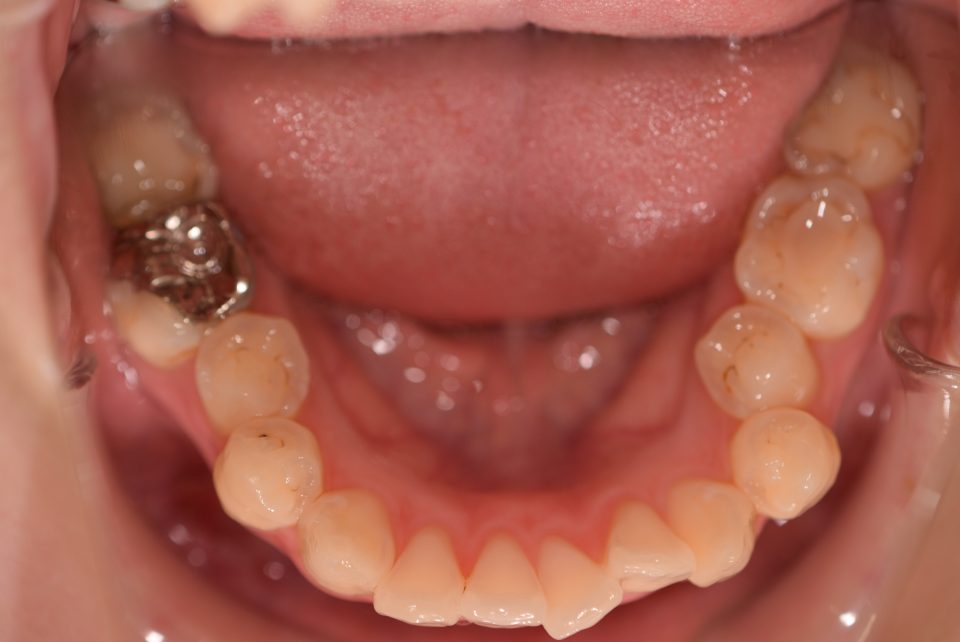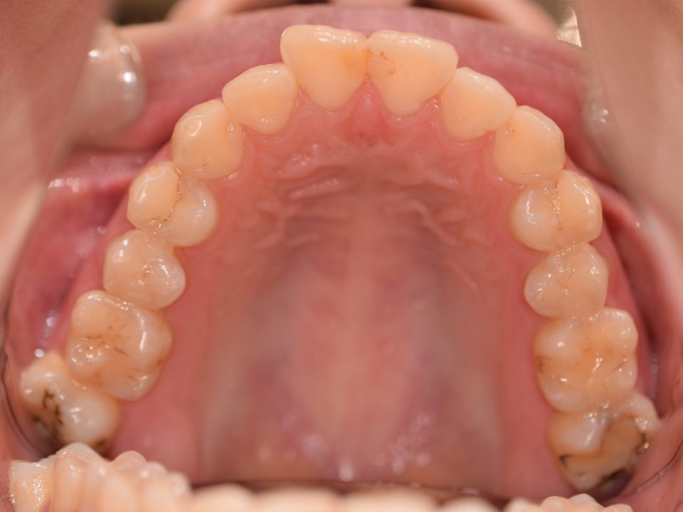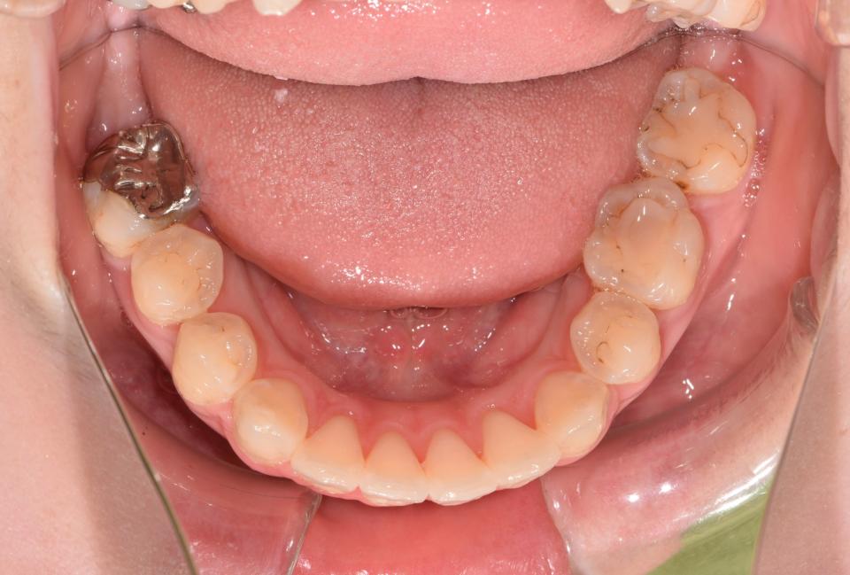 上左右4番と左下4番を抜歯して、ワイヤーを付け前歯をきれいに並べ直しました。