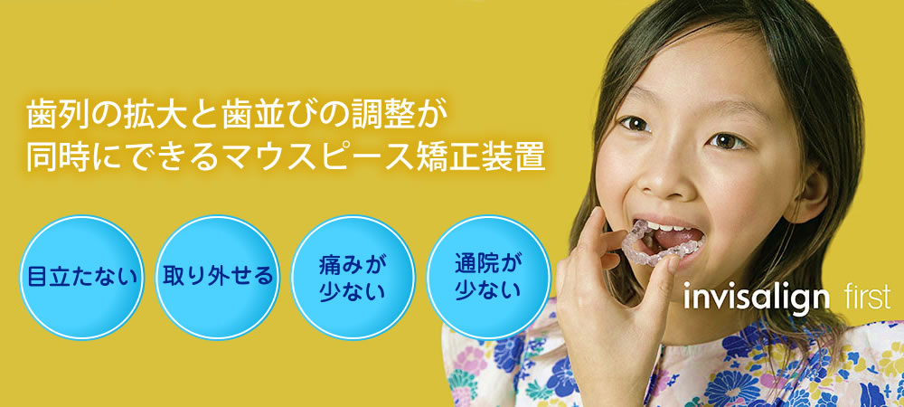 マウスピース型矯正装置インビザライン・ファーストは、混合歯列期(約6歳~10歳位)の小児向けに開発されたマウスピース型矯正装置です。